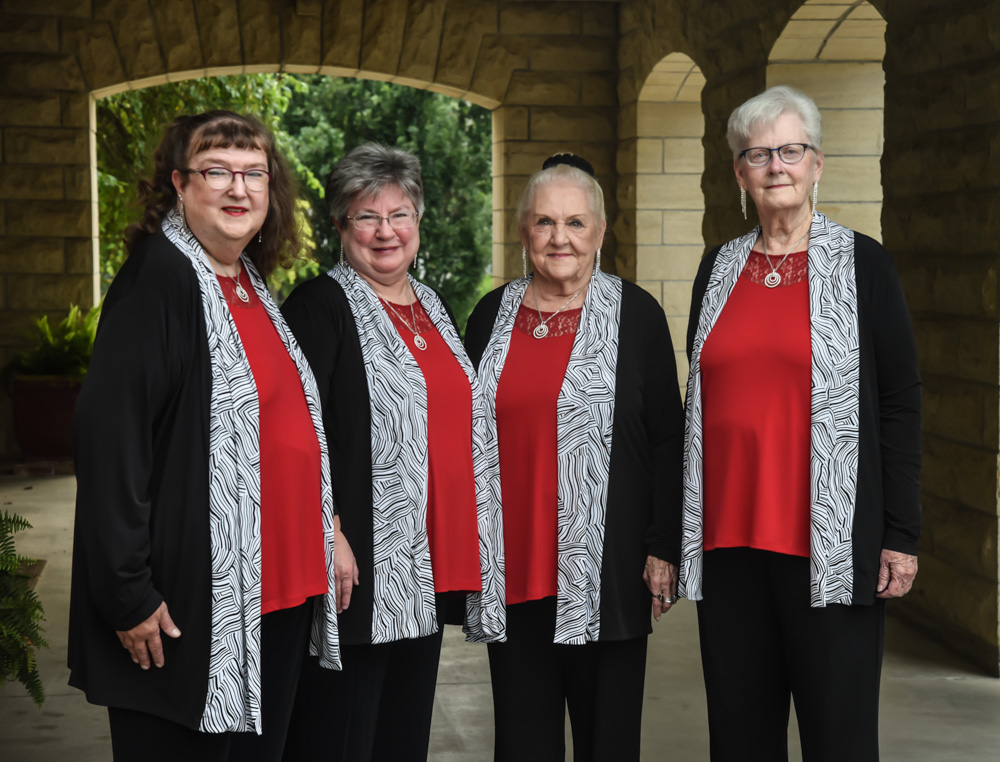 We are four women who love Barbershop music, we will sing for your event!We are in Topeka, Kansas, USA. Please call Lori Brickman at (785)233-9977 to book us!